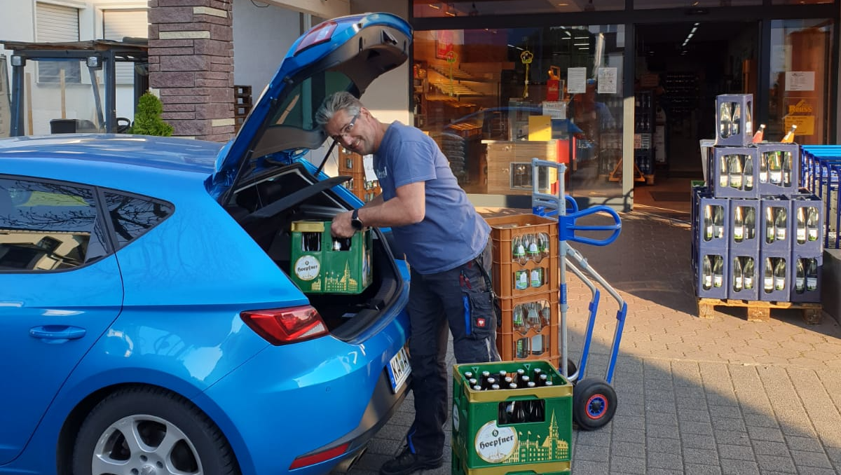 Sprechen Sie einfach unsere Mitarbeiter an. Wir verstauen Ihren Einkauf im Kofferraum und laden das Leergut aus. Sparen Sie sich das tragen der schweren Kisten!
